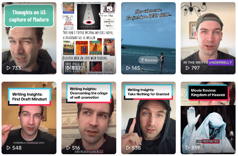 Another reason for my break from Newsletter updates was because I’ve started posting regularly on TikTok, mostly about writing and books, but also movies, politics, travel, and more general advice sprinkled in. I’ve finally gotten comfortable recording and posting quick videos, and I’m glad to see that they seem to be resonating with people, especially other writers.